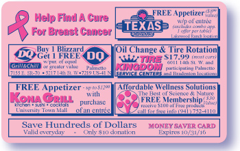 Our "Money Saver" Fundraising Discount Cards Fundraiser offering 50% - 90% profit is the number 1 and best fundraiser.  We Custom design your Discount Cards Fundraiser to meet your fundraising needs.  A Discount Card Fundraising program is easy and profitable and helps schools, churches, sports teams, non-profit, youth groups and more Fundraise in a simple, fun and profitable way.