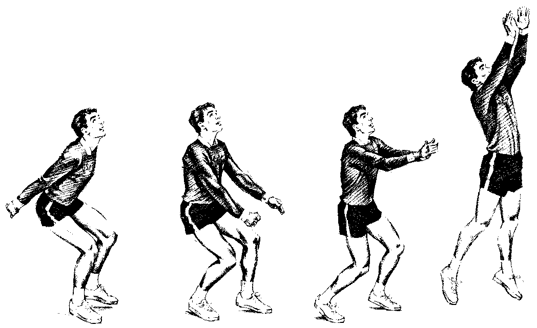 As you start your push from your legs, your arms swing quickly and vigorously upward to finish straight above your head